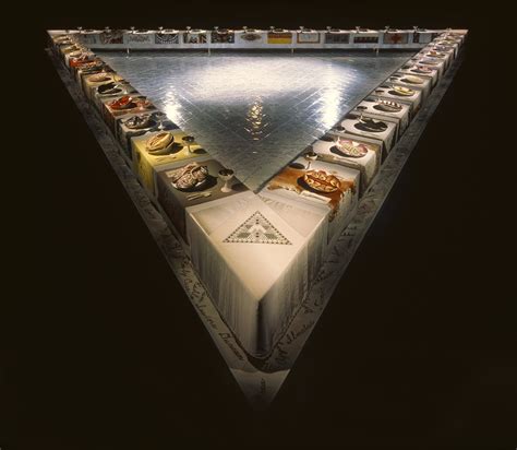 Collaborating with a team of over 400 artisans, including ceramics, needlework, and china-painting experts, Chicago brought her vision to life. The triangular shape of the table is intentional, symbolizing equality among the three sides and rejecting the traditional hierarchy of a typical boardroom table.