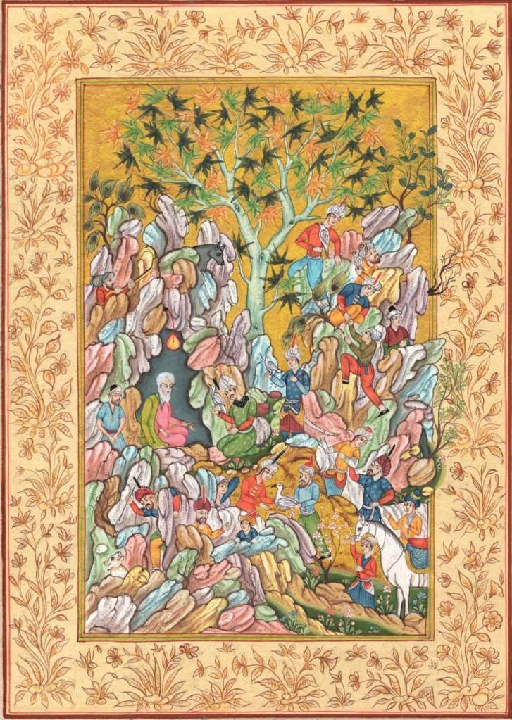 - Figural Representation: Persian miniatures often feature detailed depictions of figures, whether human or mythical, adorned in elaborate costumes. Facial expressions, gestures, and postures are carefully rendered to convey emotions and nuances.
